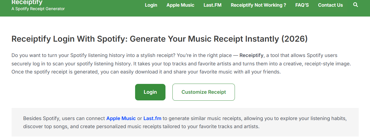 Visit https://receiptify.tools to Generate Your Music Receipt Instantly (2026)